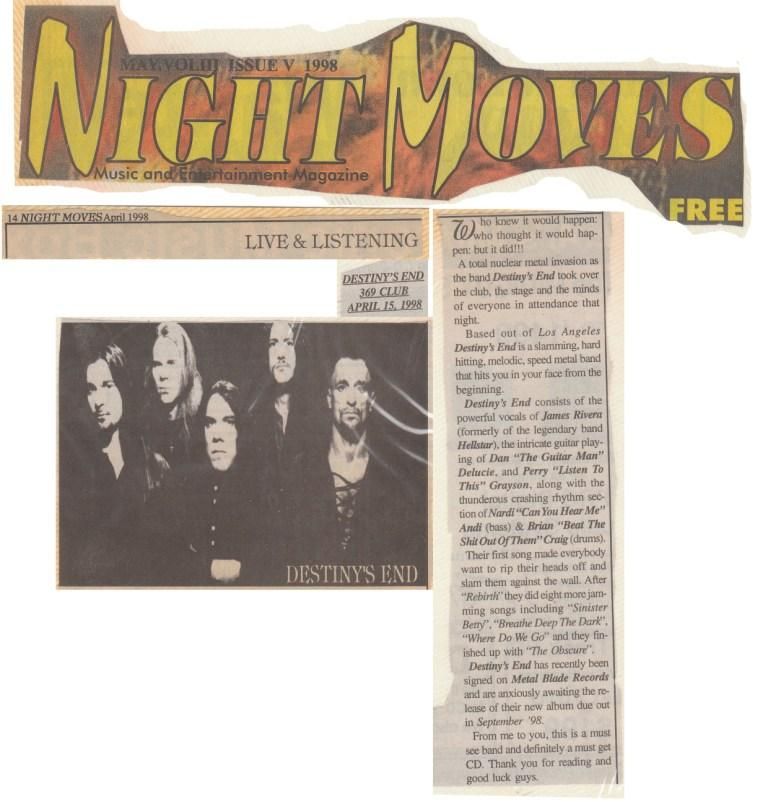 Stoked to be able to share another live DE gig with you. This sucker is from our very first SoCal gig at Club 369 in Fullerton, CA, on April 5, 1998. I recently posted video of our encore from this show, "The Obscure," on YouTube. I was going to extract the audio myself, but it seems that my old pal Rob Preston already did that a while ago made it available to some metal mates around the globe. Rob dubbed the VHS tape off me back in the days. The footage was captured by Dan DeLucie's sister Linda and Dan's now-wife Bessie, and you can hear their voices in spots. The audio gets oversaturated in sections due to the proximity of the sensitive mic to the front of house PA cabs. Overall it's an average crowd recording. Performance-wise it's pretty good.